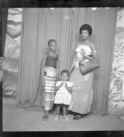 809. EAP449/2/6/442 Reference (shelfmark): EAP449/2/6/442 Title: A woman with a bag, a child, and a baby standing in profile in the studio. Collection Area: Endangered Archives Programme Languages: Not applicable Date Range: 2nd half od the 20th century Extent: 1 TIFF image