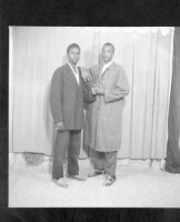 802. EAP449/2/6/688 Reference (shelfmark): EAP449/2/6/688 Title: Two men, one wearing a jacket and the other wearing a shirt, standing in profile in the studio. Collection Area: Endangered Archives Programme Languages: Not applicable Date Range: 2nd half od the 20th century Extent: 1 TIFF image