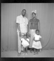 849. EAP449/2/6/545 Reference (shelfmark): EAP449/2/6/545 Title: A man wearing a shirt and a woman standing in profile behind two children standing face-forward in the studio. Collection Area: Endangered Archives Programme Languages: Not applicable Date Range: 2nd half od the 20th century Extent: 1 TIFF image