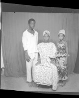 847. EAP449/2/6/695 Reference (shelfmark): EAP449/2/6/695 Title: A woman wearing a large pagne sitting face-forward and a boy and a girl standing in profile in the studio. Collection Area: Endangered Archives Programme Languages: Not applicable Date Range: 2nd half od the 20th century Extent: 1 TIFF image