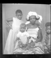 850. EAP449/2/6/837 Reference (shelfmark): EAP449/2/6/837 Title: A woman with a child sitting face-forward and two children, one standing and one sitting face-forward in the studio. Collection Area: Endangered Archives Programme Languages: Not applicable Date Range: 2nd half od the 20th century Extent: 1 TIFF image