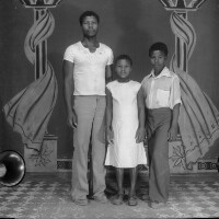 85. EAP054/1/132/191 Reference (shelfmark): EAP054/1/132/191 Title: Recreational photograph [c 1980] Scope & Content: Girl between 2 boys, all standing Format of original: 59mm x 59mm plastic negative Collection Area: Endangered Archives Programme Languages: Not applicable Date Range: c 1980 Extent: 1 TIFF image