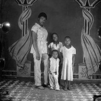 87. EAP054/1/132/208 Reference (shelfmark): EAP054/1/132/208 Title: Recreational photograph [c 1980] Scope & Content: Young woman standing with 3 small children beside her Format of original: 59mm x 59mm plastic negative Collection Area: Endangered Archives Programme Languages: Not applicable Date Range: c 1980 Extent: 1 TIFF image
