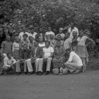 84. EAP054/1/137/141 Reference (shelfmark): EAP054/1/137/141 Title: Recreational photograph [c 1981] Scope & Content: Family group of over 20 people, trees behind. Format of original: 59mm x 59mm plastic negative Collection Area: Endangered Archives Programme Languages: Not applicable Date Range: c 1981 Extent: 1 TIFF image