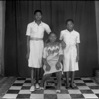84. EAP054/1/171/174 Reference (shelfmark): EAP054/1/171/174 Title: Recreational photograph [c 1986] Scope & Content: Man standing between 2 girls Format of original: 59mm x 59mm plastic negative Collection Area: Endangered Archives Programme Languages: Not applicable Date Range: c 1986 Extent: 1 TIFF image