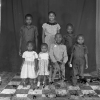 88. EAP054/1/171/184 Reference (shelfmark): EAP054/1/171/184 Title: Recreational photograph [c 1986] Scope & Content: Group of 7 children, one sitting, rest standing Format of original: 59mm x 59mm plastic negative Collection Area: Endangered Archives Programme Languages: Not applicable Date Range: c 1986 Extent: 1 TIFF image