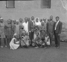 3. EAP054/1/108/25 Reference (shelfmark): EAP054/1/108/25 Title: Recreational photograph [c 1970-c 1995] Scope & Content: Bridal couple standing, people standing beside them, women crouching in front. Format of original: 55mm x 59mm plastic negative Collection Area: Endangered Archives Programme Languages: Not applicable Date Range: c 1970-c 1995 Extent: 1 TIFF image
