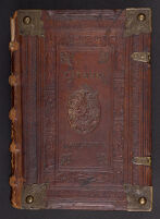 Binding: Post-1600. Brown tooled leather, stamped 'CATRINNA MARGRETA' on the upper cover, and 'VON ESSTORFF 1619' on the lower cover, and tooled with figures of Faith, Hope and Charity. Metal corner pieces with integral bosses and two clasps.