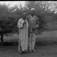 Old man in traditional dress with younger man in "gandoura" shirt.