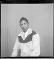 EAP449/2/7/17 : A young man sitting in the studio wearing a black and white shirt - Hierarchy:
