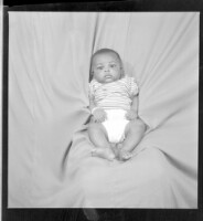 EAP449/2/7/23 : A baby laying in the studio wearing a blue and white shirt - Hierarchy: