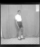 EAP449/2/9/12 : A man wearing a shirt and shorts standing in profile in the studio. - Hierarchy: