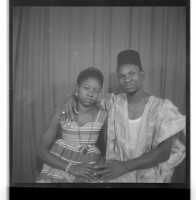 EAP449/2/12/3 : A man in a suit holding a woman in a dress, headscarf, and necklace sitting in profile in the studio. - Hierarchy:
