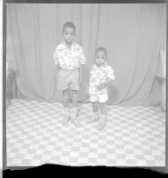 EAP449/2/13/2 : Two little boys wearing matching white shirts and shorts standing face-forward in the studio. - Hierarchy: