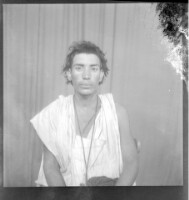 EAP449/2/13/3 : An Arabic man wearing a white boubou with a handbag sitting face-forward on a chair in the studio. - Hierarchy: