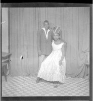 EAP449/2/13/11 : A man wearing a shirt and black jacket standing and a woman wearing a white dress and head-wrap sitting, both face-forward in… - Hierarchy: