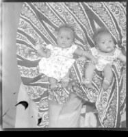 EAP449/2/13/16 : Two babies wearing white outfits laying face-forward on a black pagne in the studio. - Hierarchy: