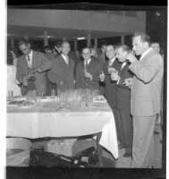EAP449/2/17/12 : Dinner party photo of about eighteen people standing around a table with many bottles and some plates. Taken in a garden. - Hierarchy: