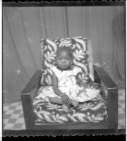 EAP449/2/19/14 : A little girl wearing a dress and necklace sitting full frontal view in the studio with several keys laying on her feet - Hierarchy: