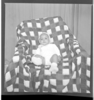 EAP449/2/25/3 : A baby in a jumpsuit and hat sitting in profile on a chair in the studio. - Hierarchy: