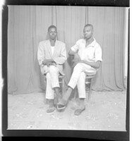 EAP449/2/25/15 : Two men, one wearing a jacket and pants sitting face-forward and the other wearing a shirt and pants sitting in profile in the studio. - Hierarchy: