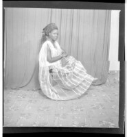 EAP449/2/25/20 : A woman wearing a dress, head wrap, and necklace sitting in profile in the studio. - Hierarchy: