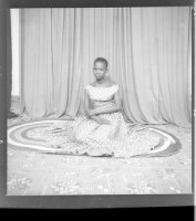 EAP449/2/26/9 : A young girl sitting on a rug wearing a dress, arms crossed in the studio. - Hierarchy: