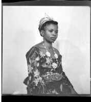 EAP449/2/26/22 : A woman sitting wearing a camisole, black headscarf, a necklace and earrings in profile in the studio. - Hierarchy: