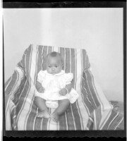 EAP449/2/26/23 : Full shot of a baby laying in a chair on a pagne in the studio. - Hierarchy: