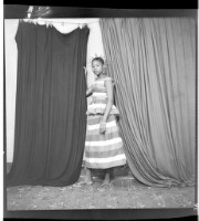 EAP449/2/26/25 : A young girl standing wearing a camisole, pagne, right arm on a curtain in the studio. - Hierarchy: