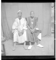EAP449/2/29/3 : Two men wearing boubous, one wearing a hat and the other holding a stick, both sitting face-forward in the studio. - Hierarchy: