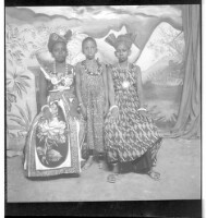 EAP449/2/29/14 : A girl wearing a dress and necklace standing face-forward in between two girls wearing dresses, head wraps, and necklaces in… - Hierarchy: