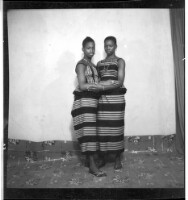 EAP449/2/29/25 : Two girls wearing dresses and necklaces holding each others' hands, standing in profile in the studio. - Hierarchy: